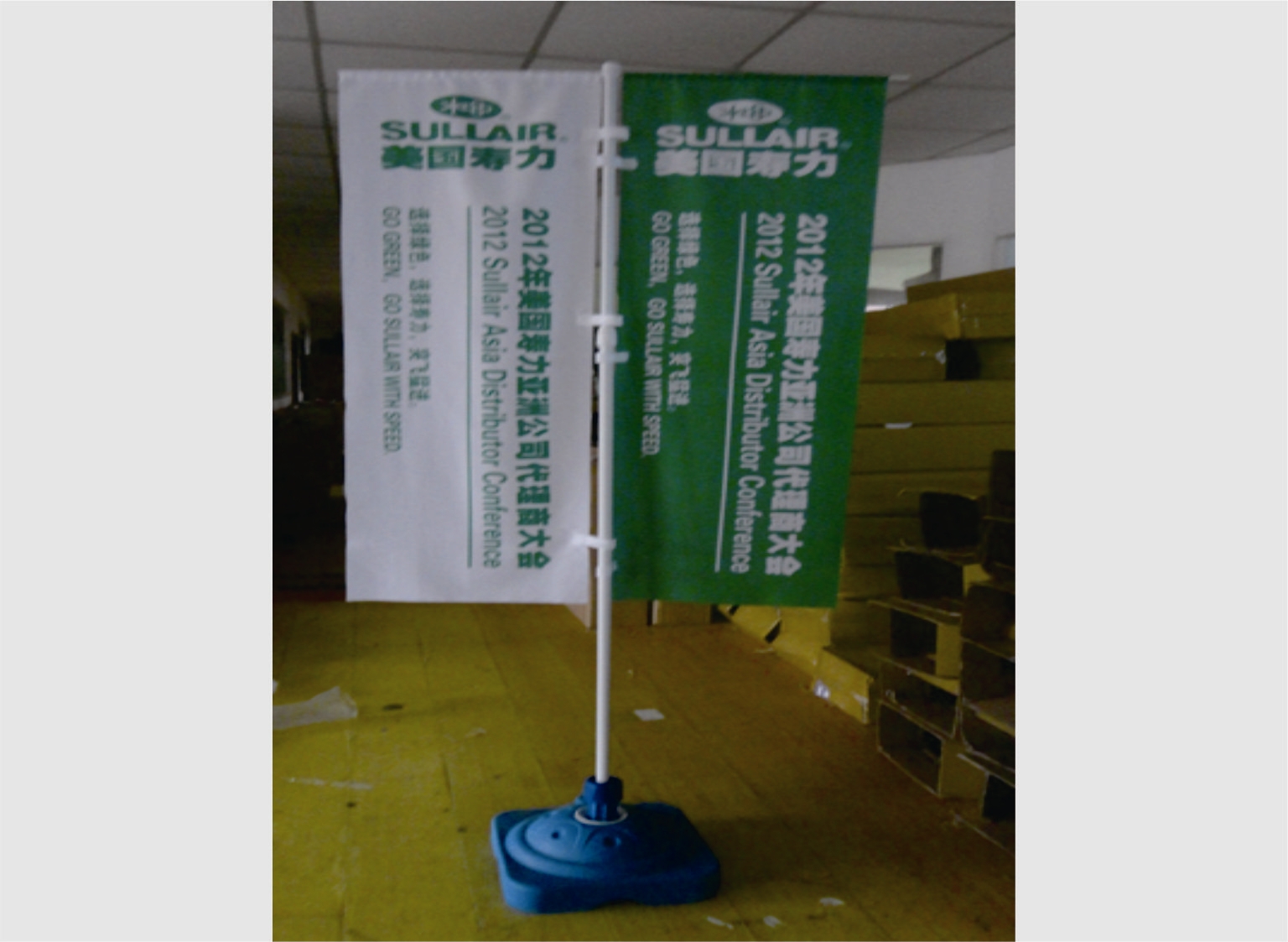 注水道旗出租高:注水旗桿(高度3米)材料:熱轉印旗幟布單面畫面尺寸:60*160cm雙面畫面尺寸:40*80cm