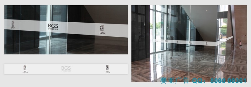 玻璃磨砂防撞條主要應用于銀行、酒店、辦公場所、火車站、汽車站等大型公共場所。主要是貼防撞條提醒人們防止撞上透明玻璃而受傷。這是一種新工藝是先噴畫,再鏤空logo與文字,可作為廣告與防撞條使用。另提供其它單色貼膜,有在戶外保5-7年的大洋油墨材料選擇。廣州銀行大廈防撞條執行方案。